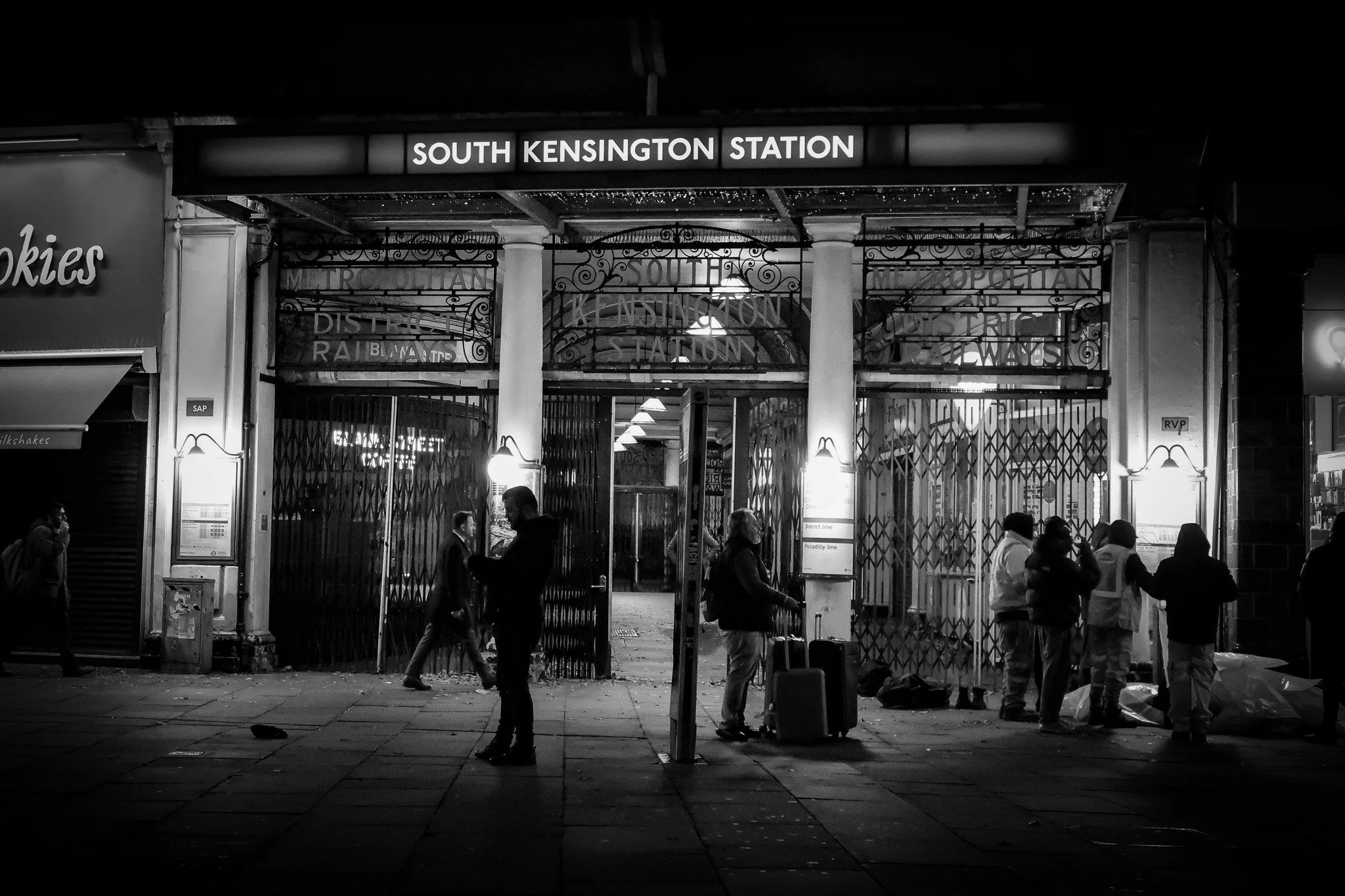 Commuters gather beneath ironwork and light, suspended between arrival and leaving.