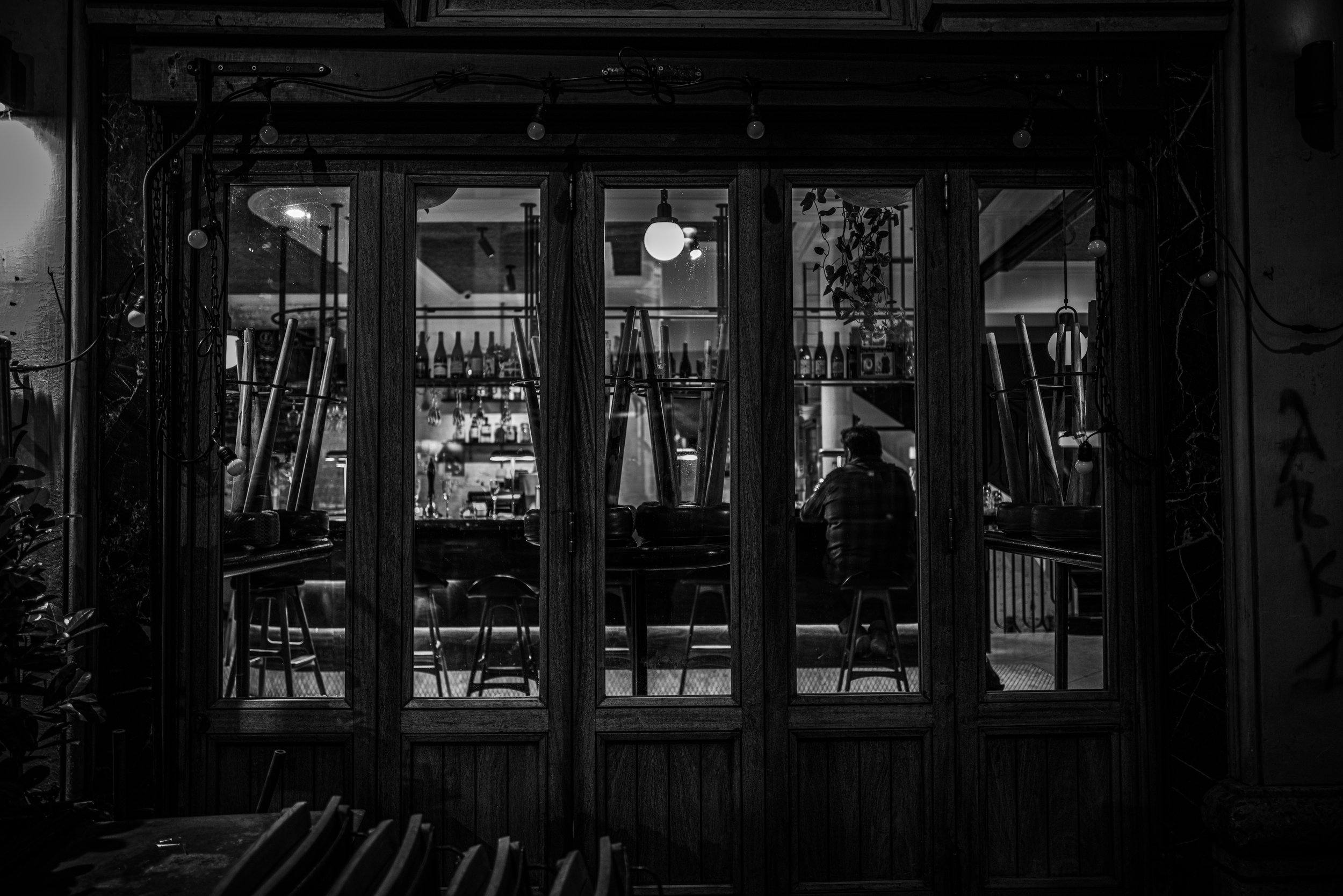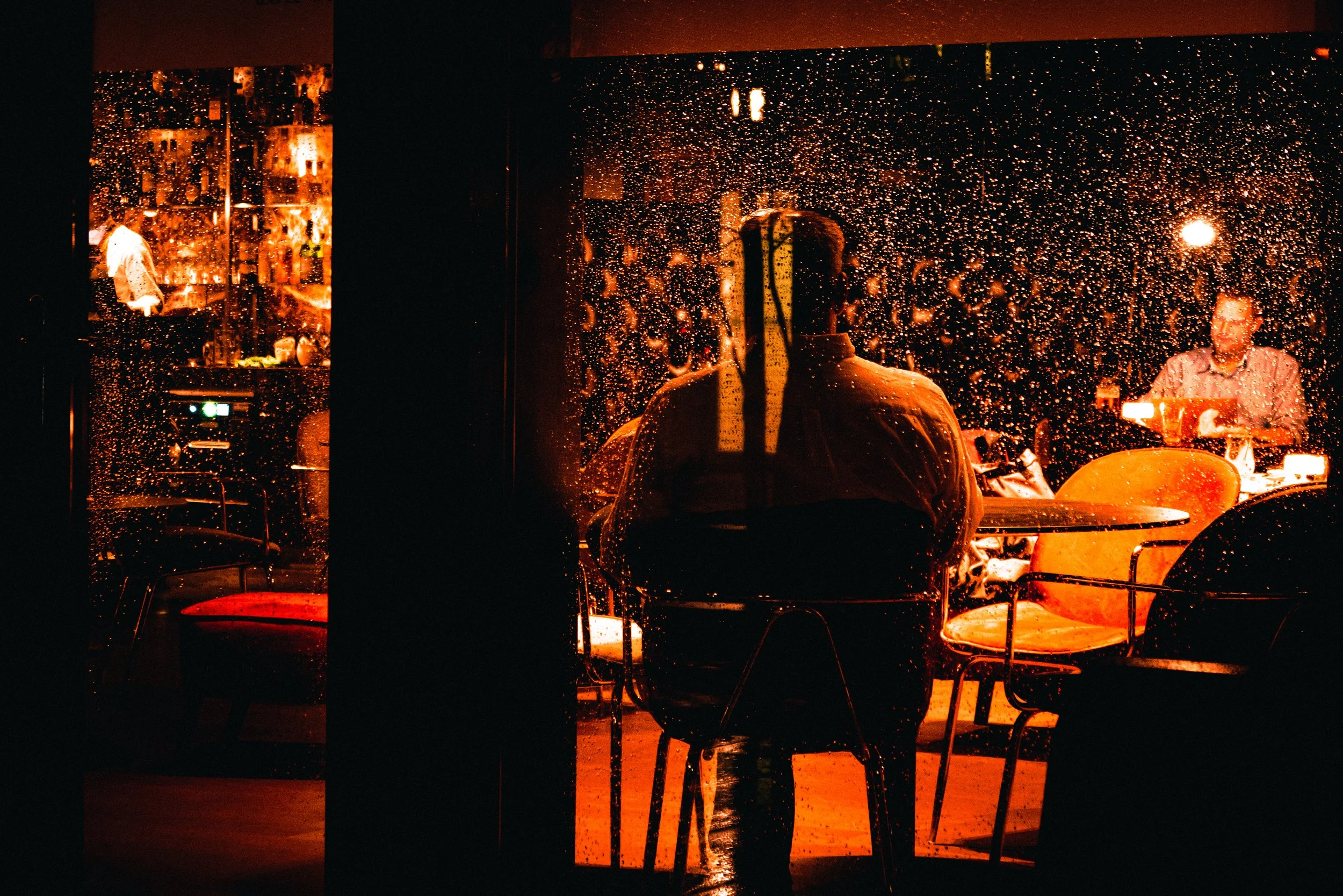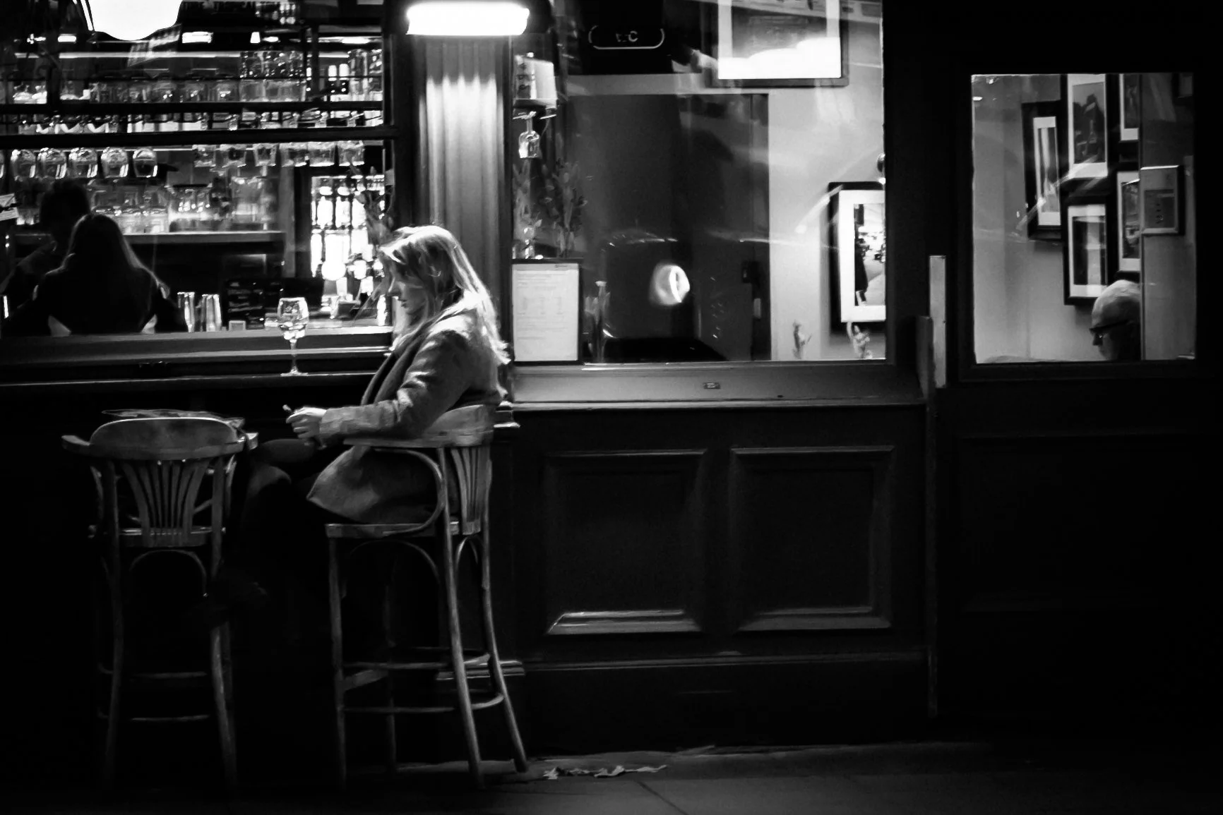 Seen from outside, the subject exists within a contained world. The glass creates separation, reinforcing the distance between observer and observed. The photograph explores how isolation can exist even within shared spaces.