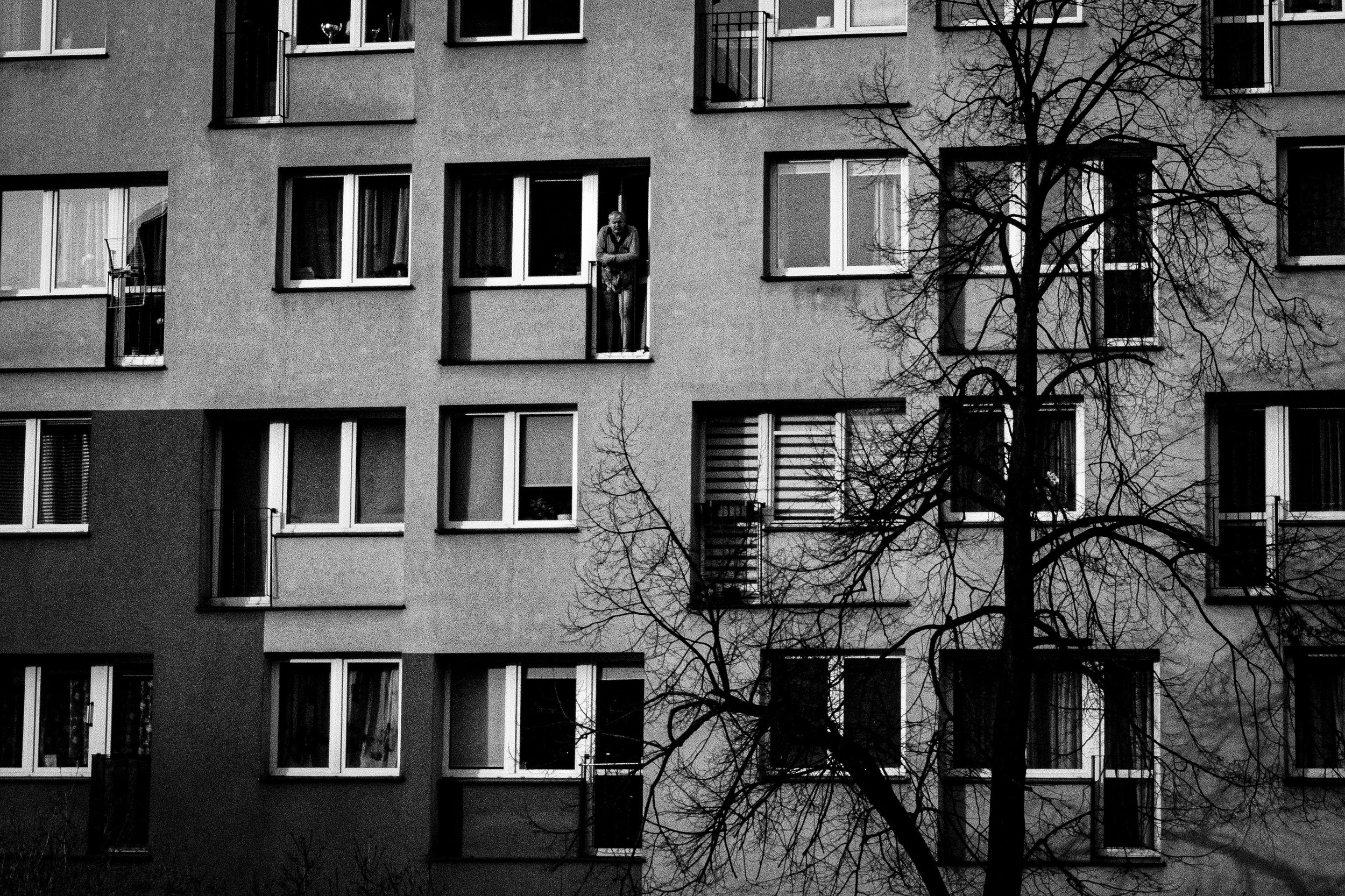 Framed by architecture, the subject becomes part of the structure itself. The environment defines their presence. This photograph explores the quiet containment of modern life.